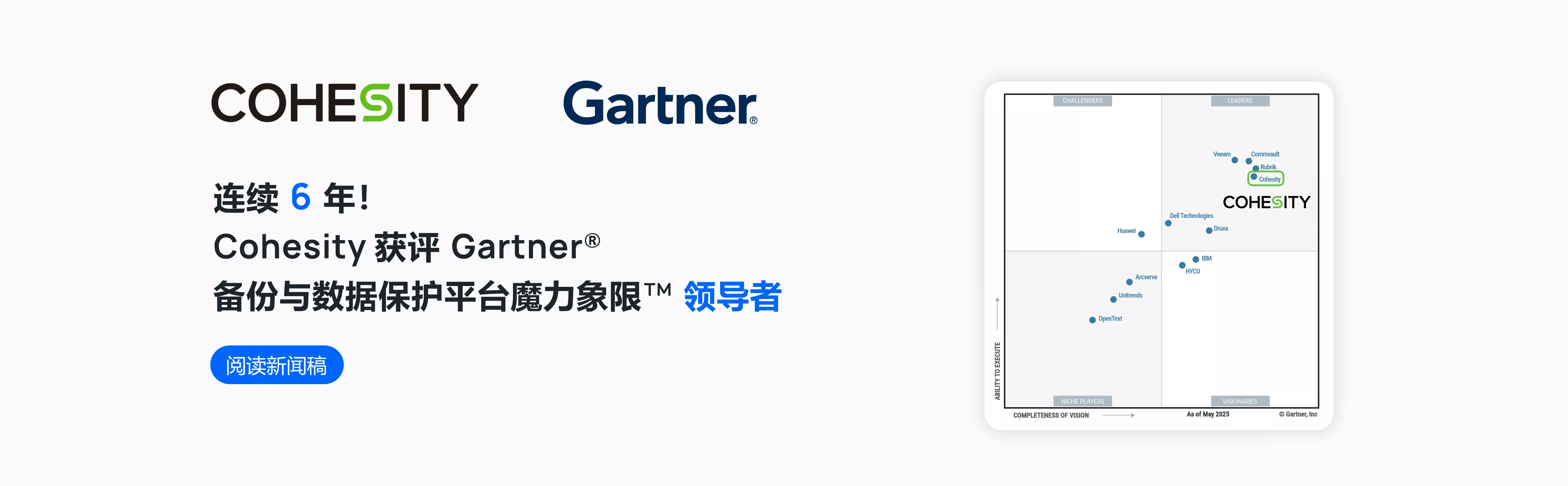 2020-2025年,连续6年!被Gartner评为备份与数据保护平台魔力象限™领导者